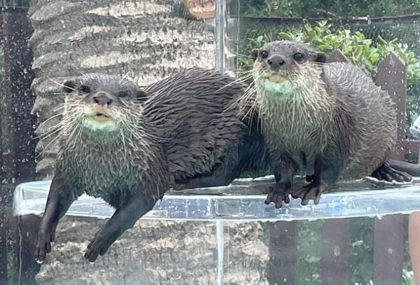 じゃれ合う姿が可愛いコツメカワウソファミリーがいます。