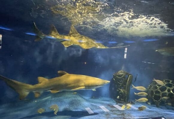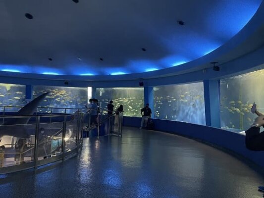 360度見渡す限り水槽を泳ぐ魚やサメを心行くまで見ることができます。