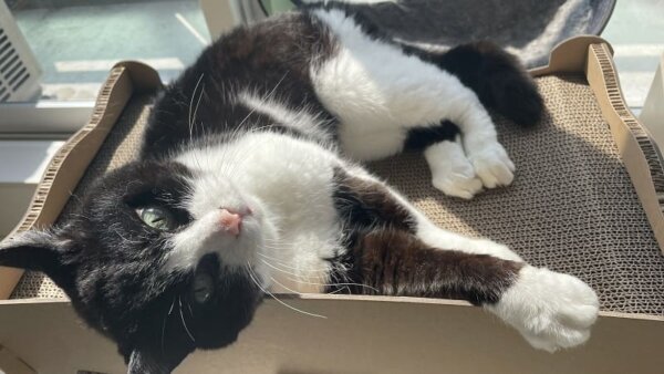 「17歳の猫が使い続けている段ボールキャットタワー」