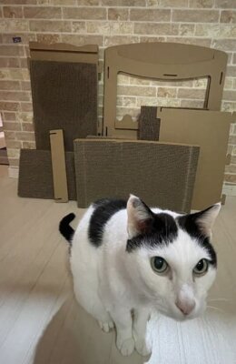 • 10分で組み立てれる段ボールタワーだから猫も大好き