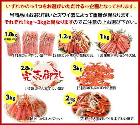 私が購入したのは楽天市場のこちらの「本ズワイガニ最大3キロ」という商品