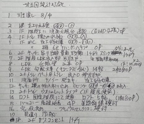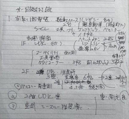 次回の打ち合わせではそれらを汲み取った間取り案を見ながら打ち合わせ。