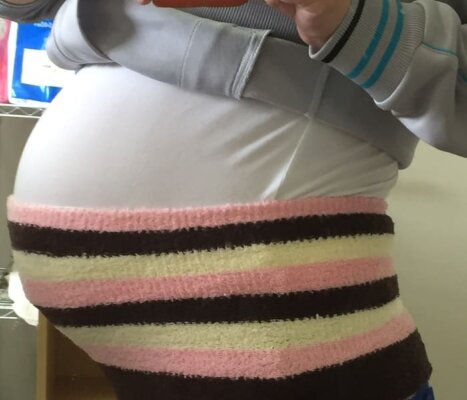 というか、腹が大きすぎて座る体勢が苦しすぎる。
