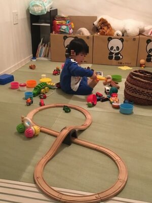 4歳あたりからおもちゃが急激に増えたのでリビングに玩具は引越しました。