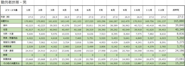 参照:政府統計の総合窓口e-Stat「家計消費単身モニター調査2019年」を基に月平均の生活費を計算