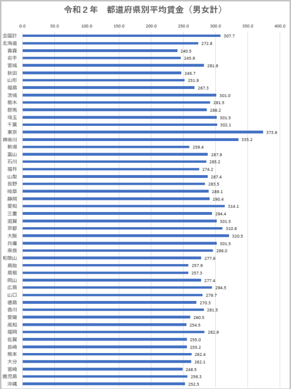 あなたが一人暮らしする都道府県の平均賃金はいくらですか?