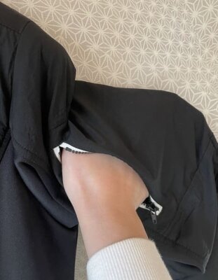 でもこのジャケットはトレーナーに羽織ってなお肩回りがスムーズに動きました。