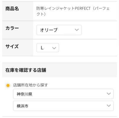 オンラインストアで検索して欲しいサイズがある店舗へ