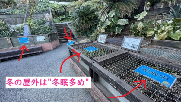 冬の屋外は"冬眠中"のポップが多いのはご愛敬