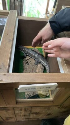 日替わりで爬虫類に触れあえるコーナーがある