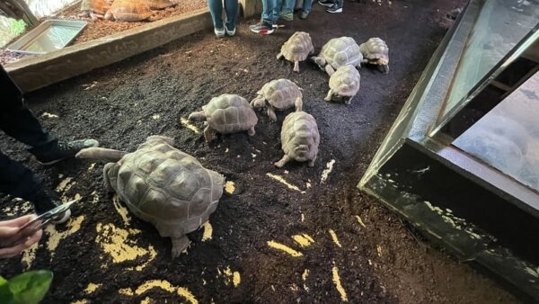ふれあいコーナーではリクガメが自由に動き回っている