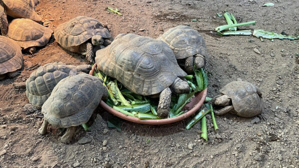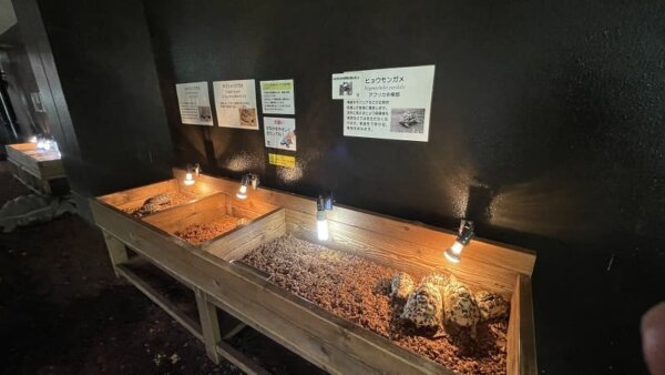 この区画ではヘルマンリクガメ、ギリシャリクガメ、ホルスフィールドリクガメ、フチゾリリクガメが飼育されています。