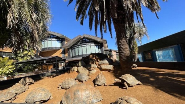屋外にはゾウガメが気持ちよさそうに日向ぼっこしてますね。