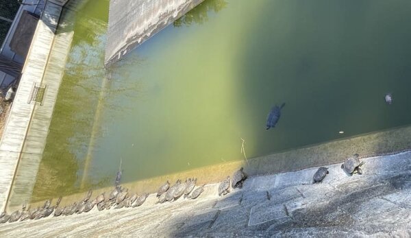 のぶ湖は飼育放棄された外来種のカメの憩いの場