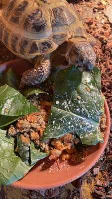 葉っぱを食べてるのはギリシャリクガメ。