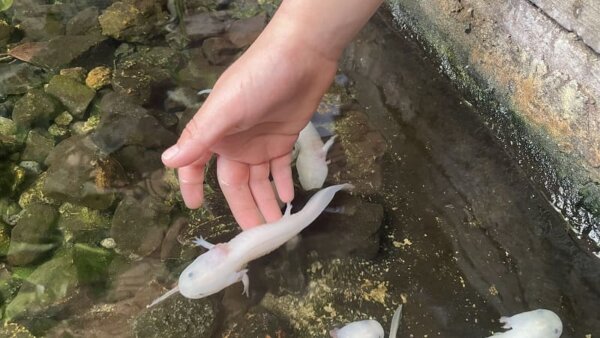 ウーパールーパーに触れる