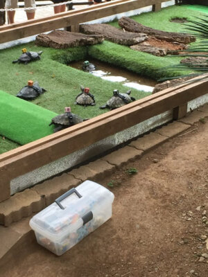 イグアナの下には飼育放棄されたカメたちの救済所"のぶ湖"があります。