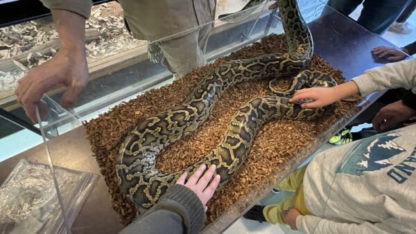 いきなり2~3mあるニシキヘビを目の前に置かれてびっくり