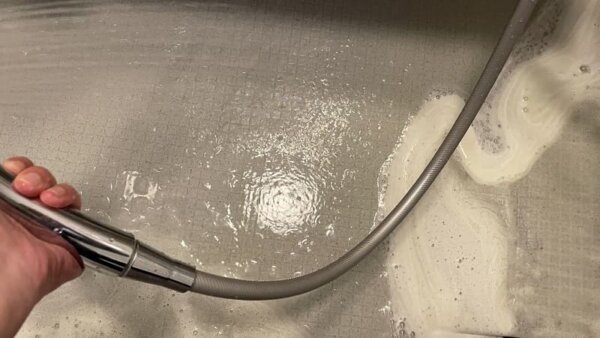 腰かけたまま頭とか体洗ったり流すもんだから皮脂汚れと石鹸汚れが混ざって、強固な汚れになってるんですよね。