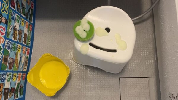 皮脂汚れ、石鹸汚れでアイボリーカラーになっていた浴室椅子も真っ白になりました。