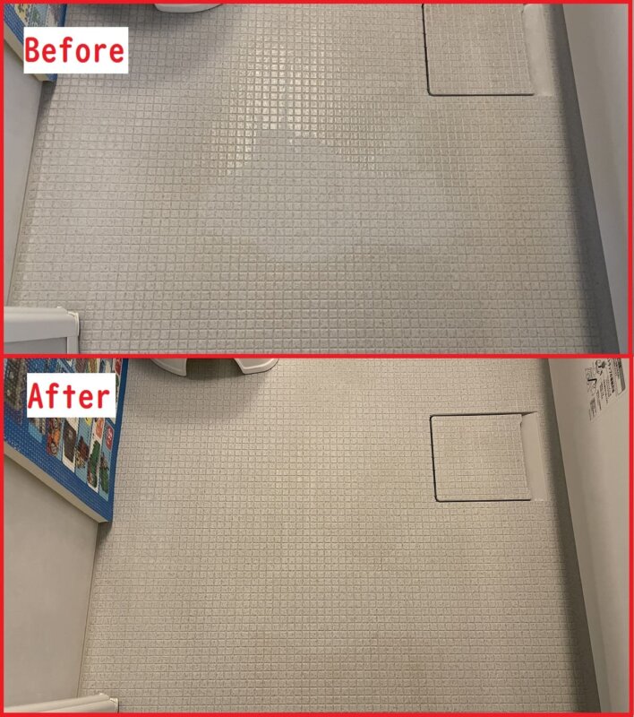 床は濡らした状態で、バスマジックリン(浴室用中性洗剤)をひたすら噴射。