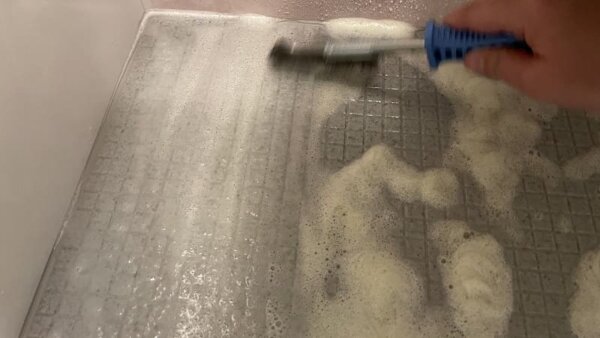 • やり方は床にお湯撒く、バスマジックリン撒く、撫でるようにブラシで擦る
