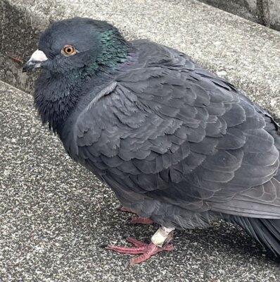 伝書鳩か鳩レースで使われている個体かもしれない。
