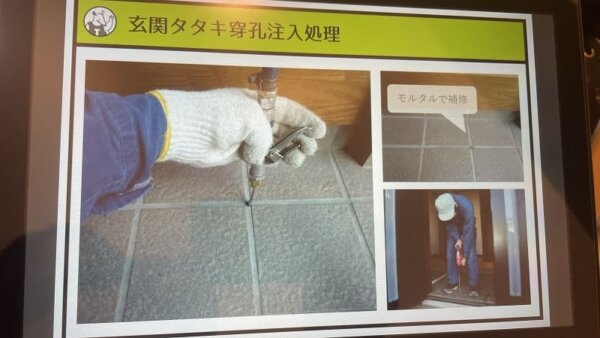 床下:薬剤散布 玄関ポーチ:タタキ穿孔注入処理 |