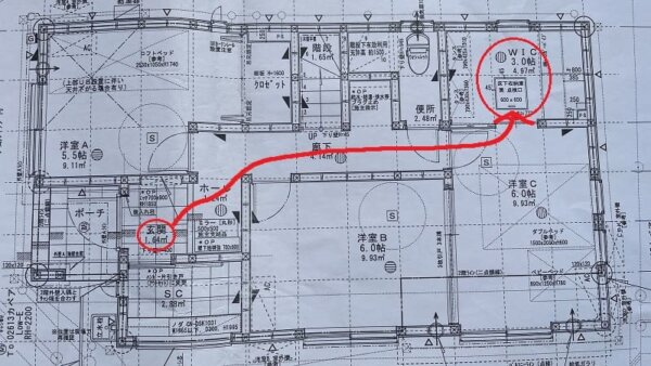 - ベタ基礎の場合床下がないため「壁」か「玄関ポーチ等」に穴をあけることになる