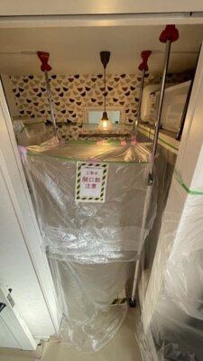 なるべく点検口から埃などが室内に舞い上がらないためにやっているそうです。