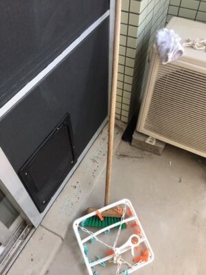 ベランダに放置していたモップと物干し竿ハンガーをベランダに持って行ったこと。